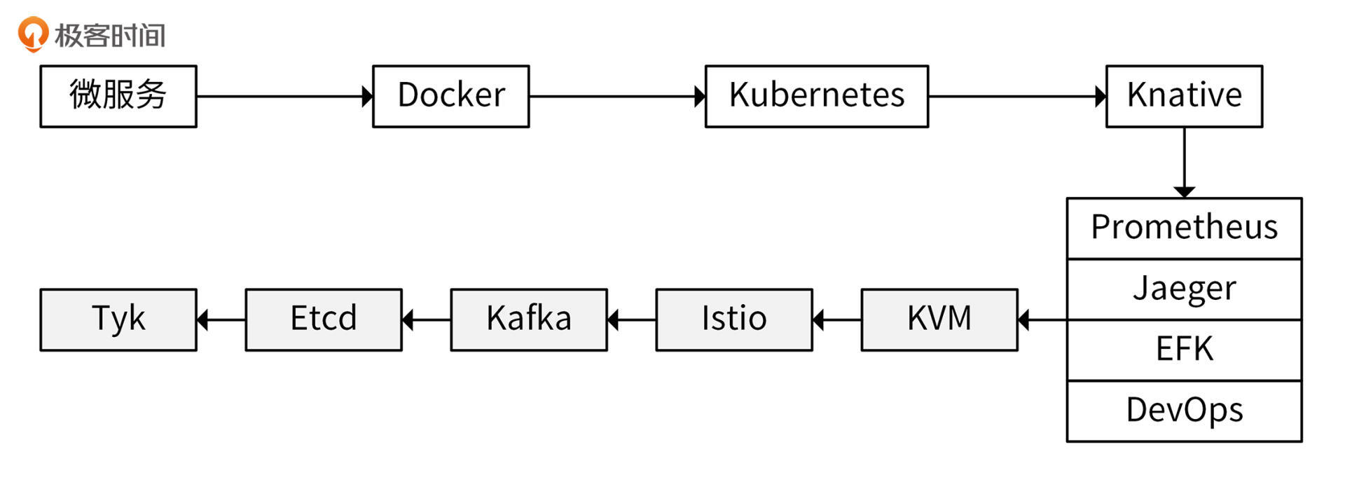 通过学习微服务、Docker、Kubernetes、Knative、Prometheus、Jaeger、EFK、DevOps这些技术,你可以掌握云原生中的核心技术栈;通过学习KVM、Istio、Kafka、Etcd、Tyk,你可以补全你的云原生核心技术栈。如果你还有精力,还可以再学习下TKEStask、Consul、Cilium、OpenShift这些项目。下面,我给你介绍一些不错的参考资料。