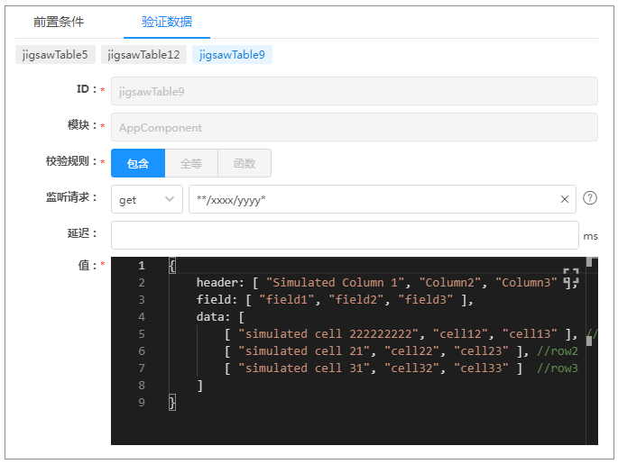 类似的配置其实在上面就出现过了,只是你可能没注意到而已,我们在配置验证数据时的界面如下: