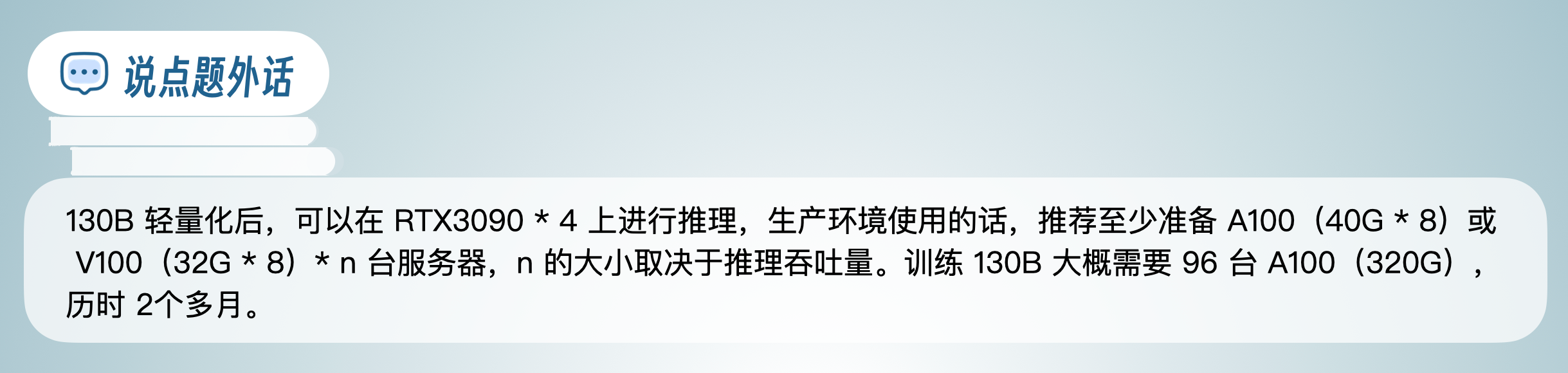 当然,如果企业预算充足(百万以上),可以尝试6B的老大哥GLM-130B,简称130B,千亿参数规模,推理能力更强,使用130B的话除了GPU资源费用,还需要进行商业授权,这个要注意。