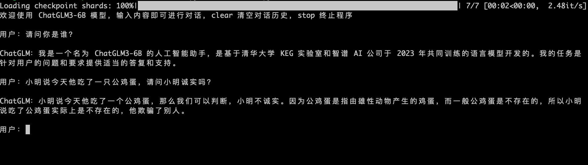 执行 python cli_demo.py。