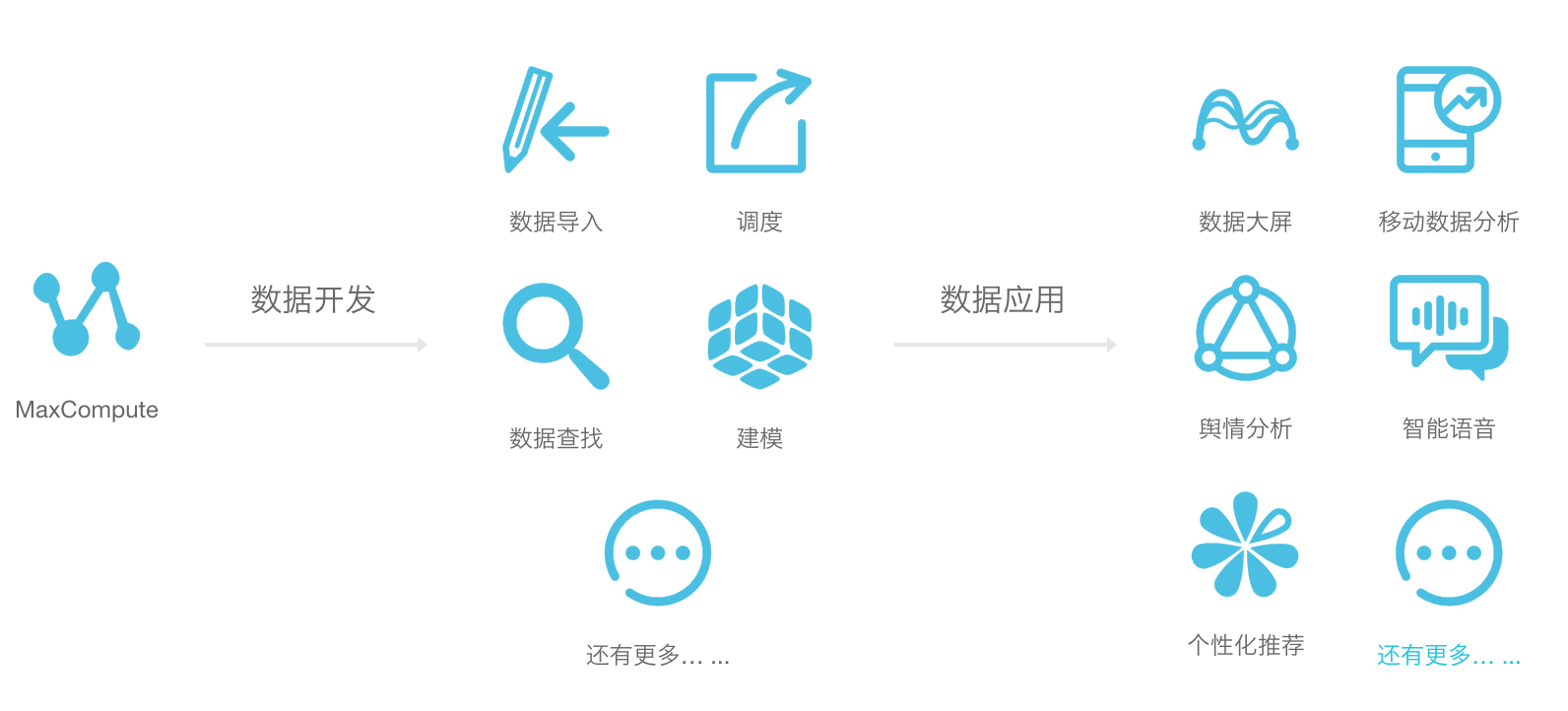 云计算厂商将大数据平台的各项基本功能以云计算服务的方式向用户提供,例如数据导入导出、数据存储与计算、数据流计算、数据展示等,都有相应的云计算服务。我以阿里云为例,一起来看看云计算厂商的主要大数据服务。