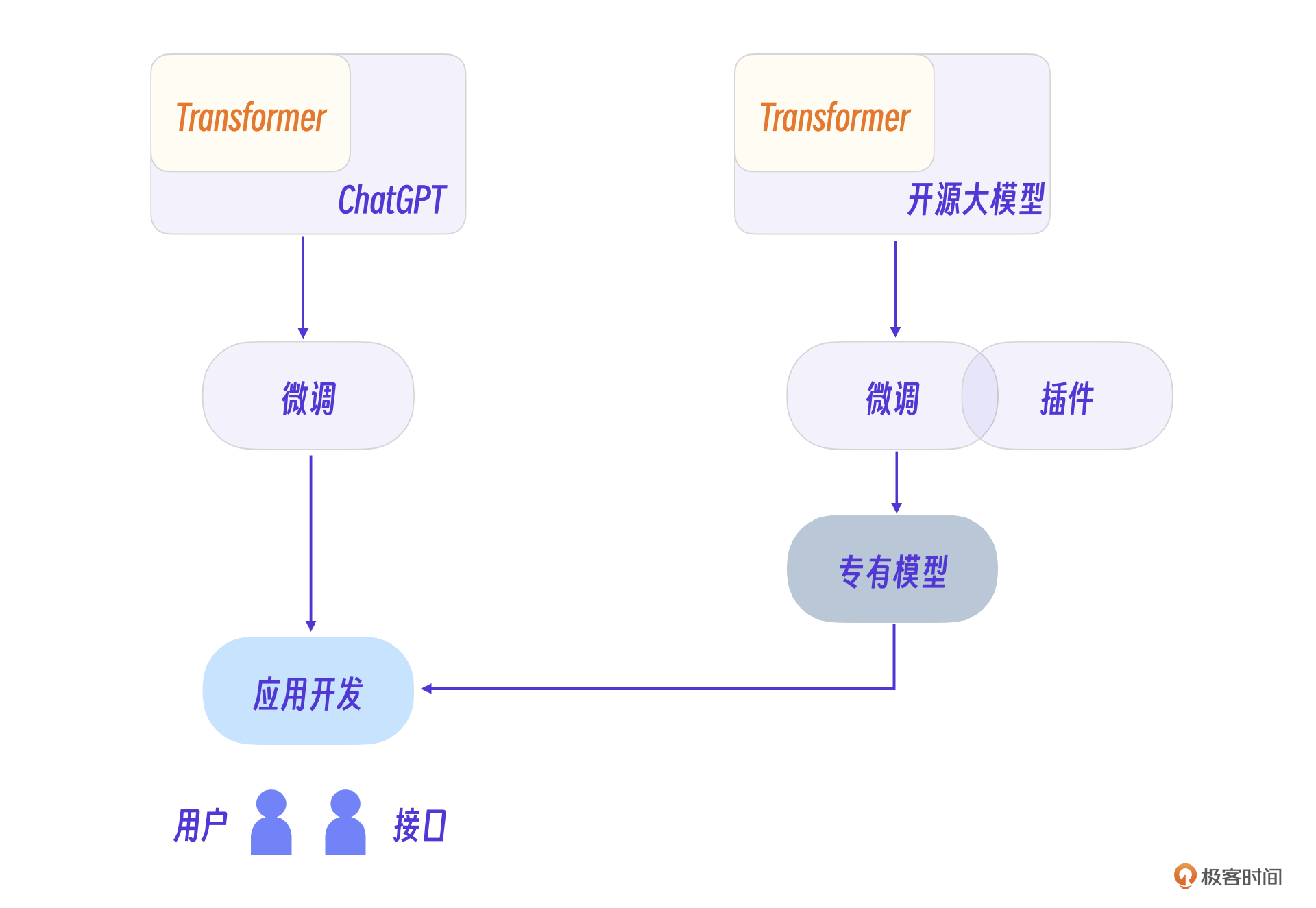 现在让我们回顾第一、第二节课的内容,梳理一下Transformer、大模型、微调以及应用开发的关系。