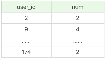 1 | SELECT user_id, count(*) as num FROM product_comment group by user_id limit 100 |