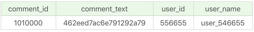 1 | EXPLAIN SELECT comment_id, user_id, comment_text FROM product_comment WHERE comment_id = 900001 OR comment_text = '462eed7ac6e791292a79' |
