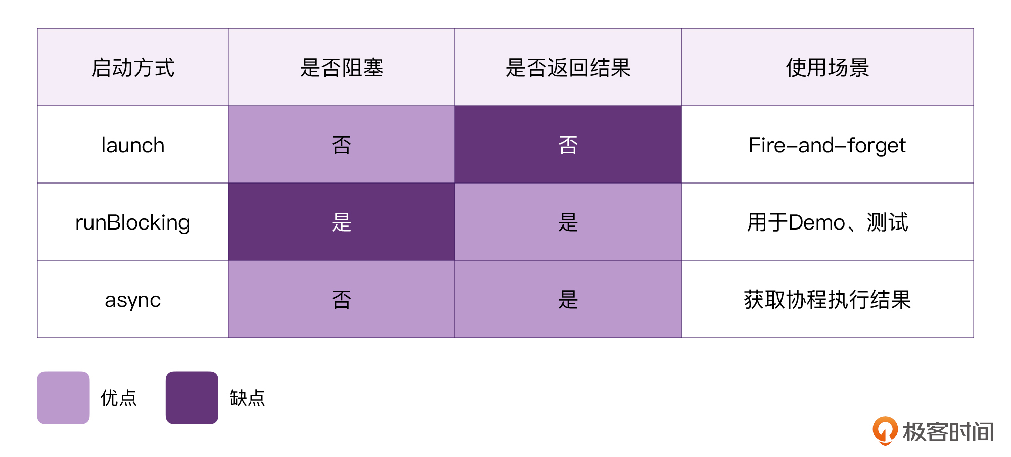 - launch,是典型的“Fire-and-forget”场景,它不会阻塞当前程序的执行流程,使用这种方式的时候,我们无法直接获取协程的执行结果。它有点像是生活中的射箭。