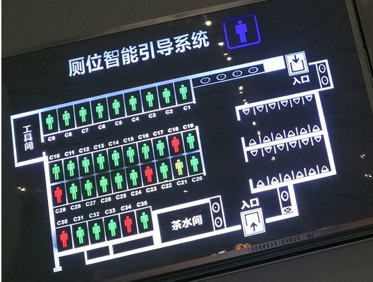 上海虹桥火车站的厕位智能引导系统,不知道你有没有见过?这个系统很厉害,我们要想知道哪个位置有没有被占用,不用挨个拉门,从这样一个电子版上就能看到了。