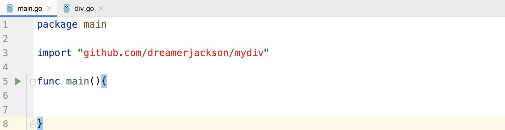还有一种办法是在终端的当前项目中,运行go get github.com/dreamerjackson/mydiv。