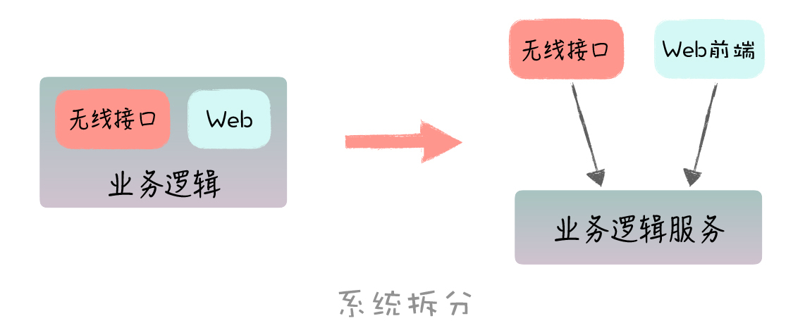 那么,在架构上,我们就需要把共性的系统级功能进行集中处理,把个性化的业务功能进行分散处理。