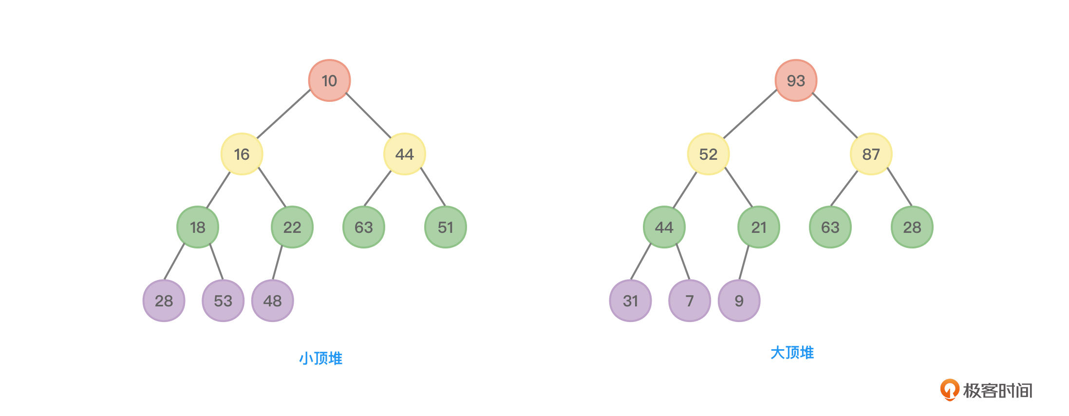 图3所示为一个小顶堆和一个大顶堆: