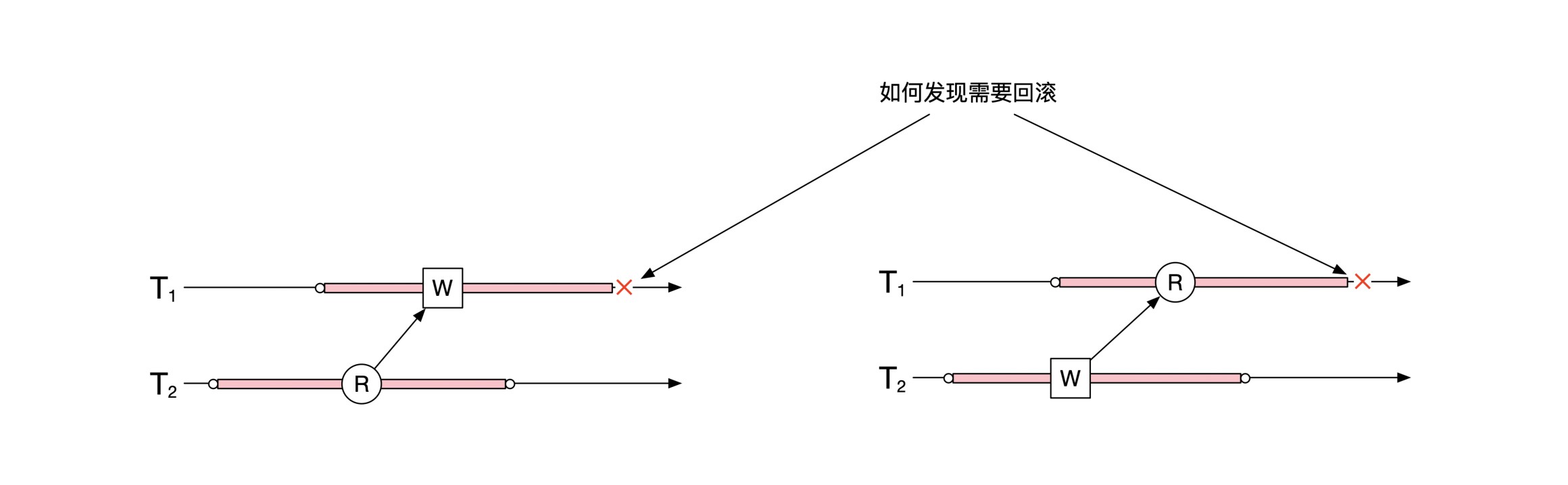 读写冲突和写读冲突刚好相反。读写冲突发生的时候需要负责写的事务提交,而写读冲突需要写的事务回滚。那为什么要叫这个名字呢?