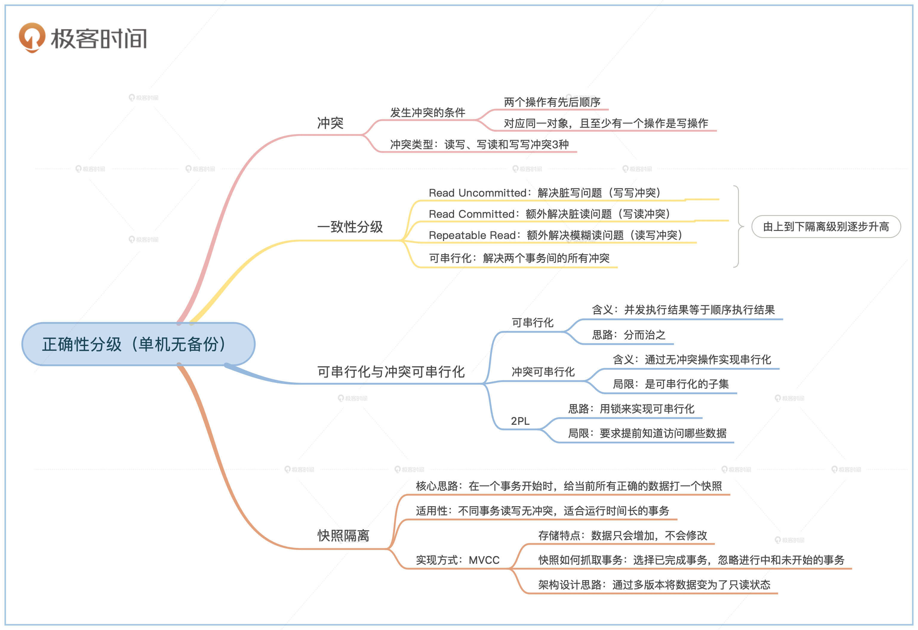 当我们定义好冲突之后就可以看看都有哪些不正确了。在数据库理论里对不正确的分级叫作隔离级别(Isolation Level)。