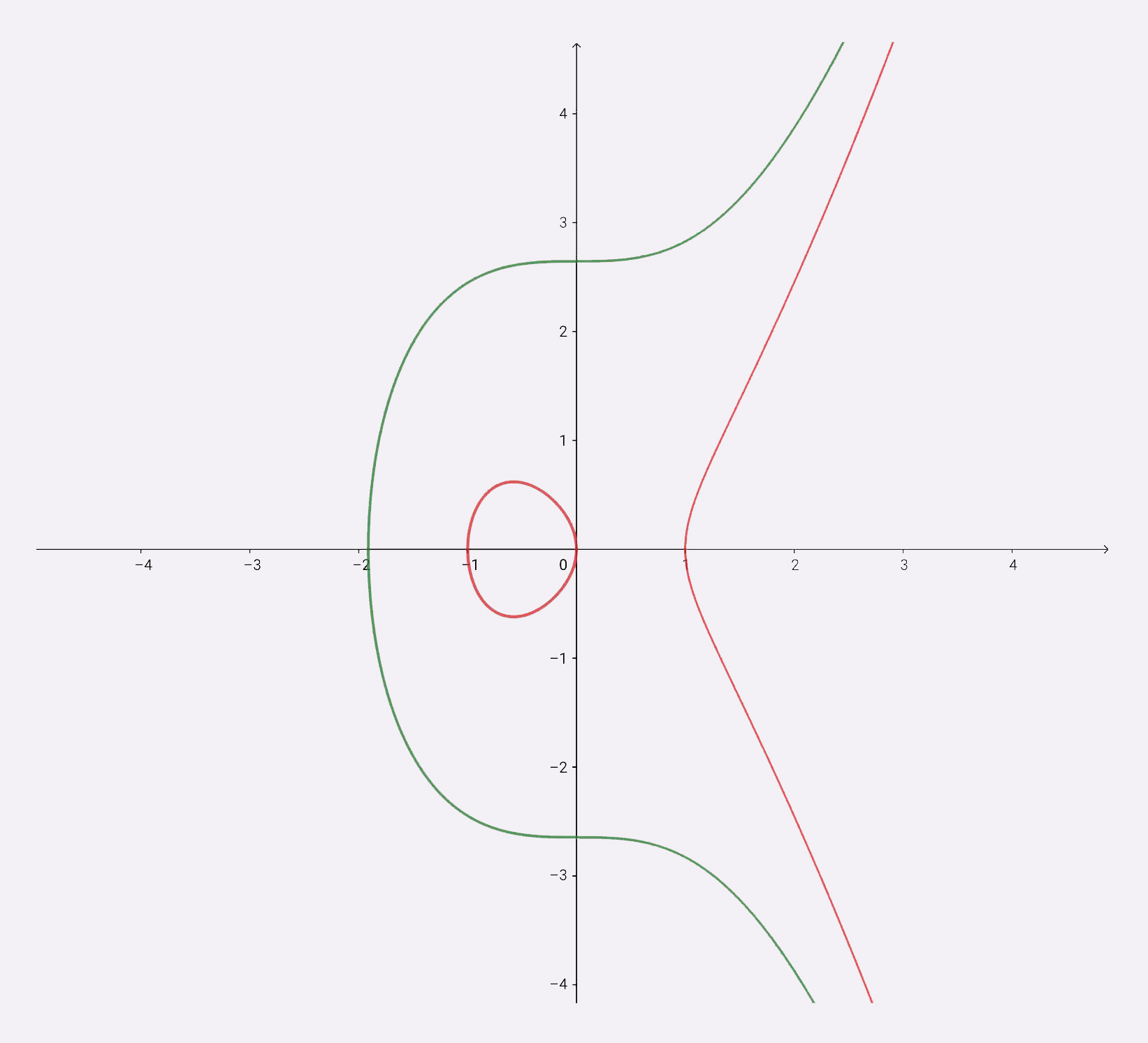 ECC名字里的“椭圆”经常会引起误解,其实它的曲线并不是椭圆形,只是因为方程很类似计算椭圆周长的公式,实际的形状更像抛物线,比如下面的图就展示了两个简单的椭圆曲线。
