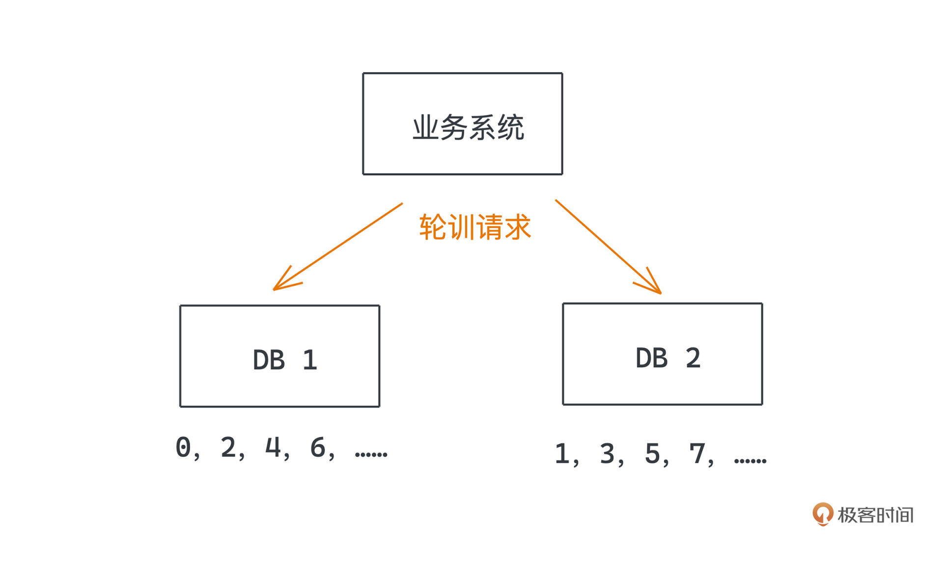 既然单点写性能不高,我们如果扩展多个库,平均分摊流量是不是就可以了呢?这也是非常常用的提高系统吞吐量的办法。接下来的问题就是,多个库之间如何分配ID呢?