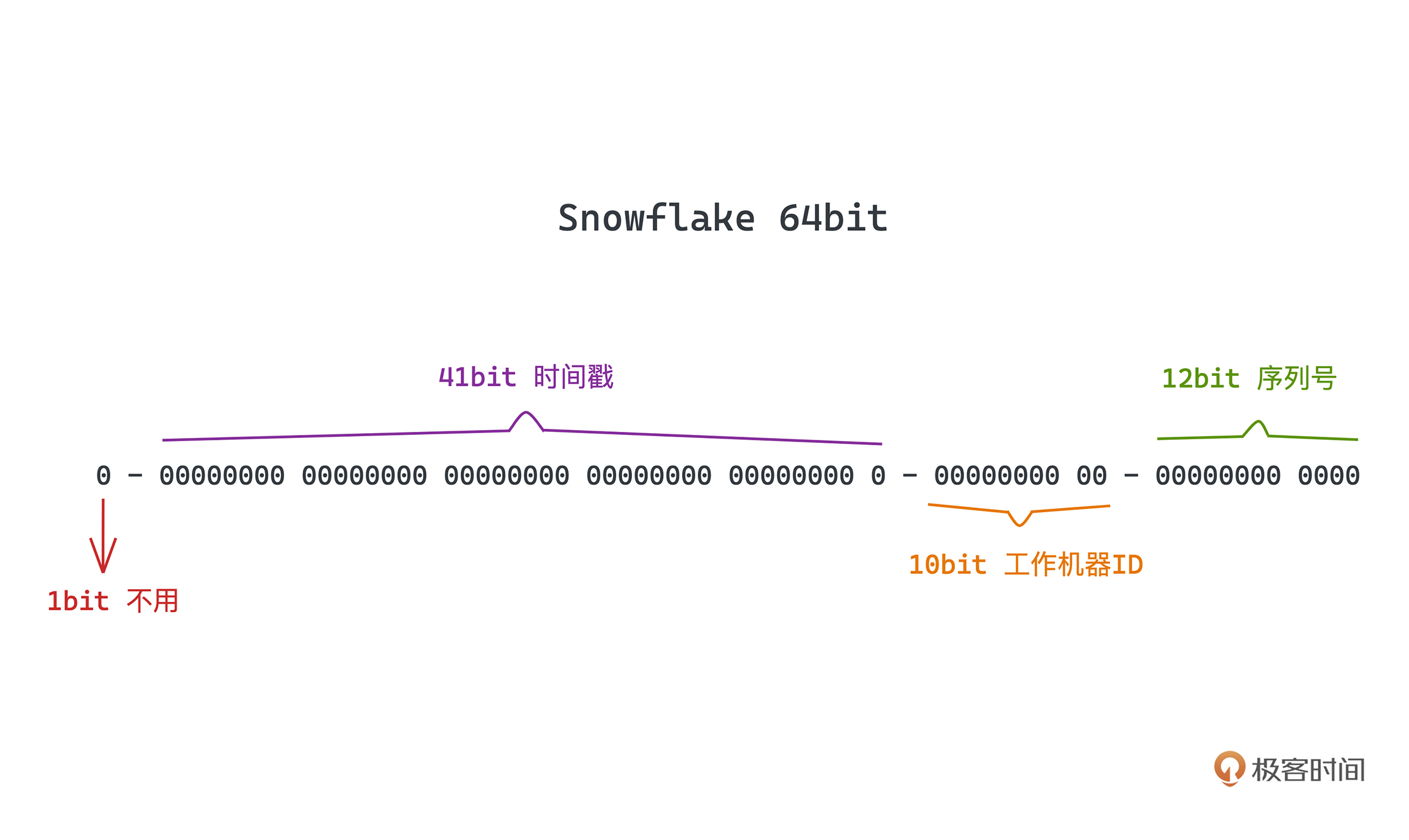 - 后面连续41位存储时间戳,可到毫秒级精度。