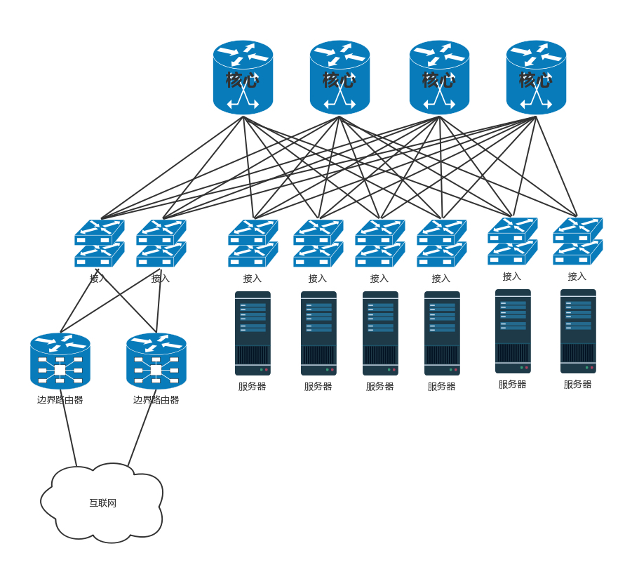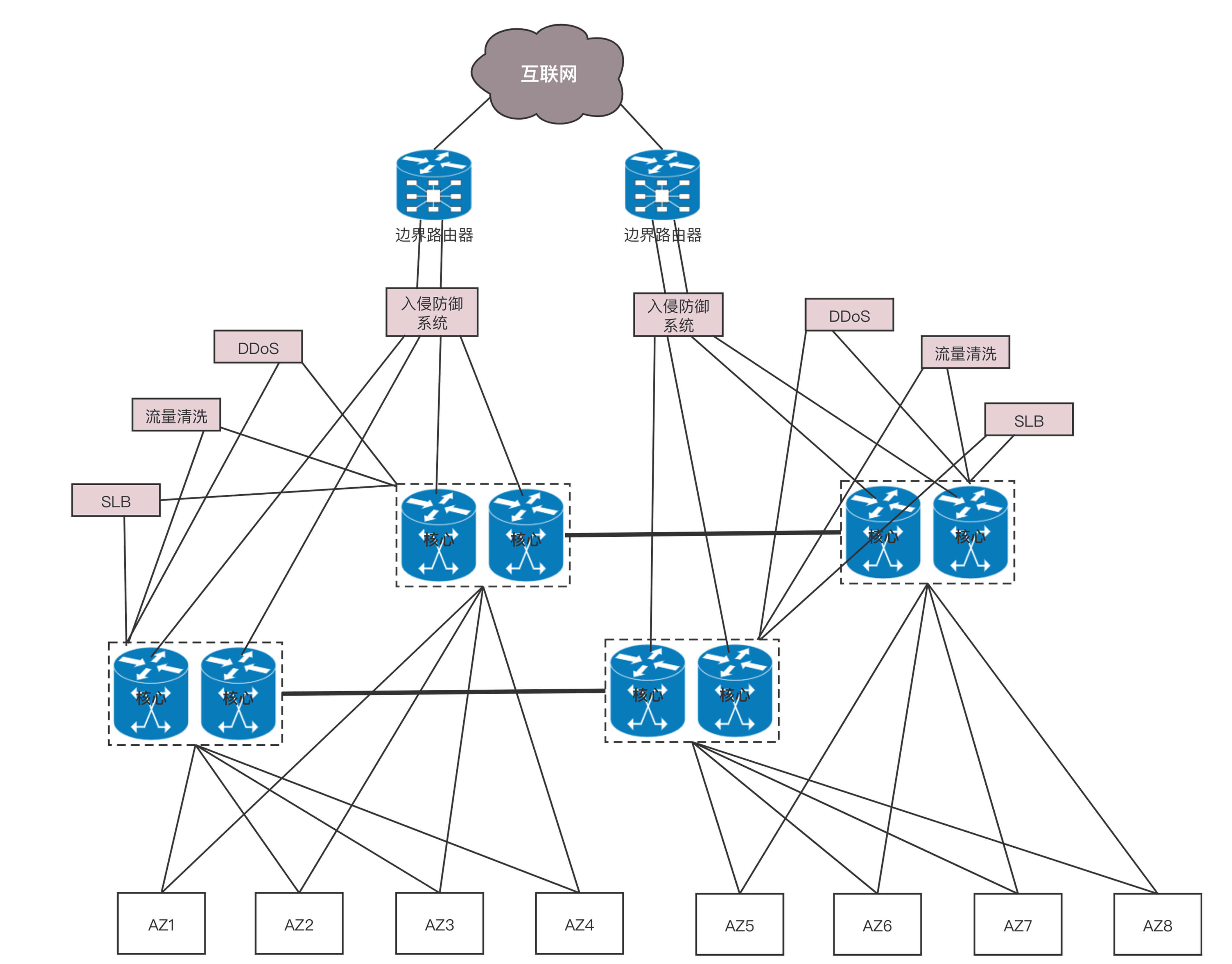 核心交换机之外,就是边界路由器了。至此从服务器到数据中心边界的层次情况已经清楚了。