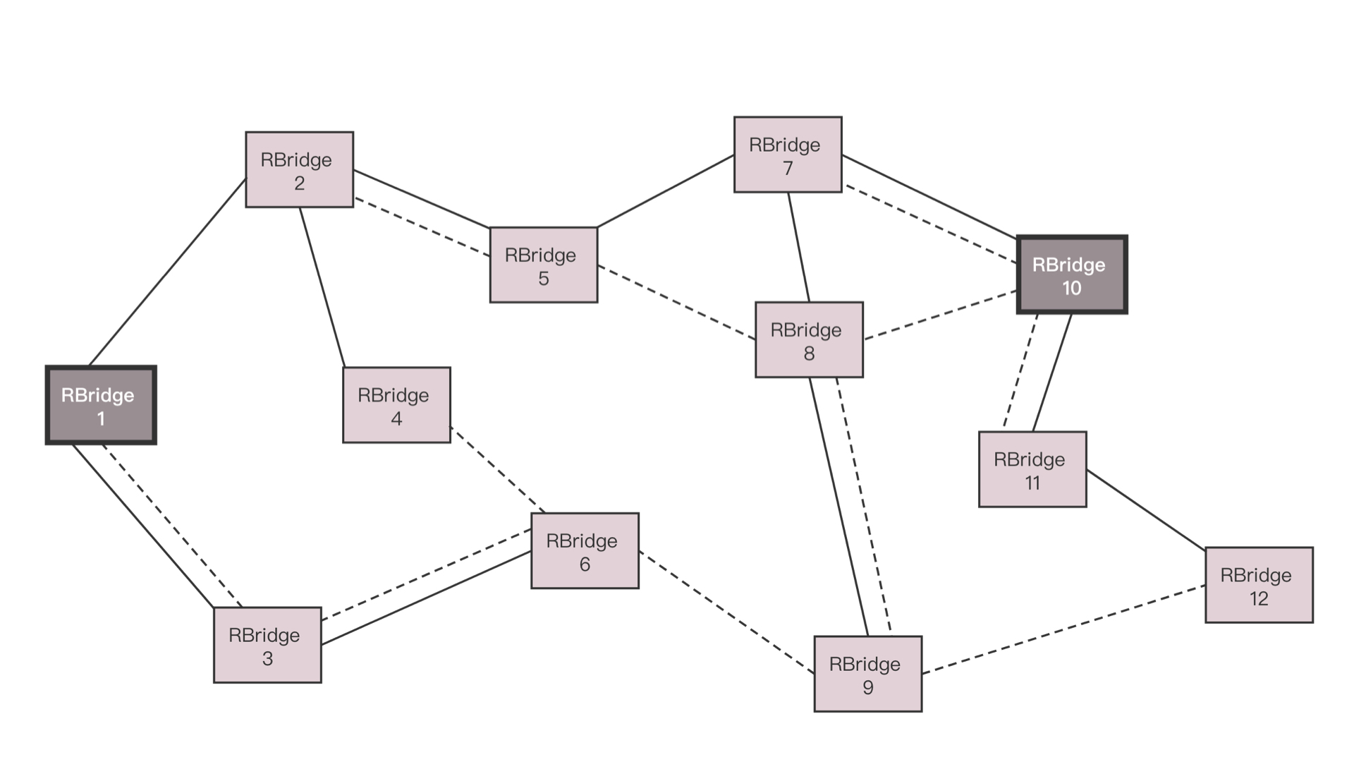 运行TRILL协议的交换机称为RBridge,是具有路由转发特性的网桥设备,只不过这个路由是根据MAC地址来的,不是根据IP来的。