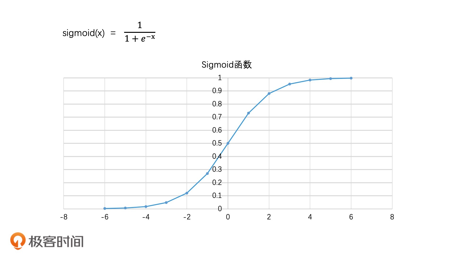 Sigmoid函数的取值范围是(0,1),它的函数公式和图像如下所示:
