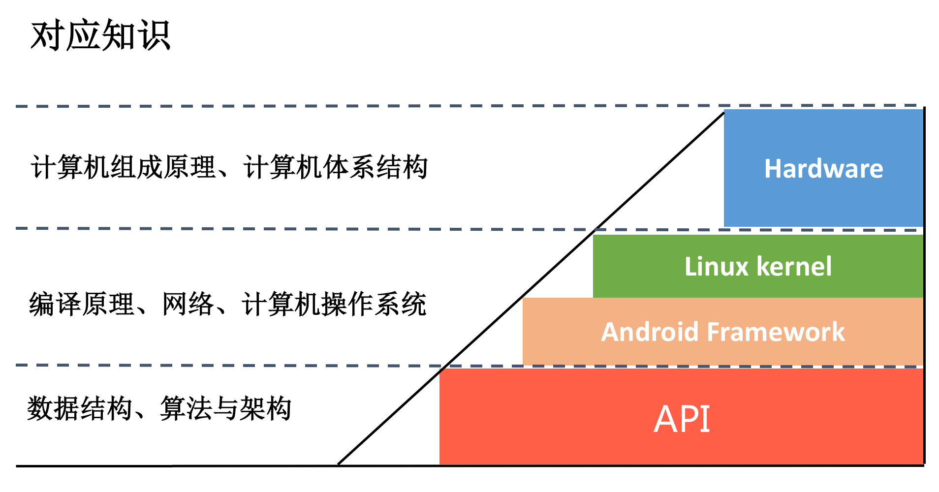 坦白说,现在很多移动开发工程师更像是API工程师,背后的数据结构、算法和架构相关的知识是不达标的。这个时候如果想往底层走,就会感觉步步艰辛。但是上层的API很容易被Deprecated,即使你对Android的所有API倒背如流也无法成为真正的开发高手。这样的你,即便以后把Android替换成Fuchsia,你也还只是一个Dart API工程师。