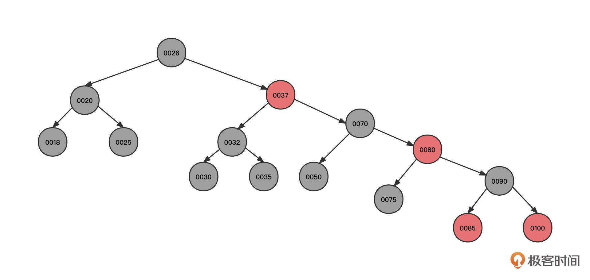 - 37的左子节点为26,判断出26比30小,所以需要从26的右子树继续查找;