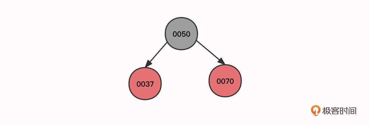 **1. 按照这个顺序,首先我们连续插入节点50、节点37、节点70,**其初始状态如下图所示: