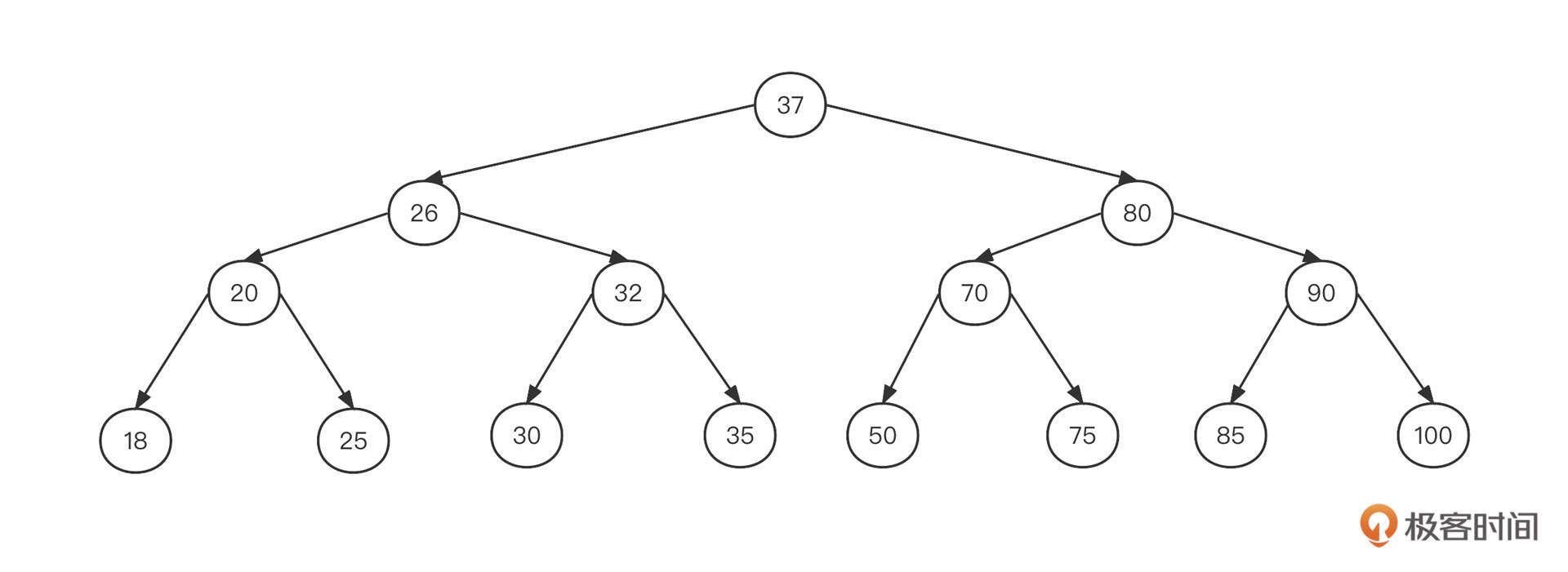 如果上图这棵二叉树变成一棵二叉排序树,可能长成下面这个样子: