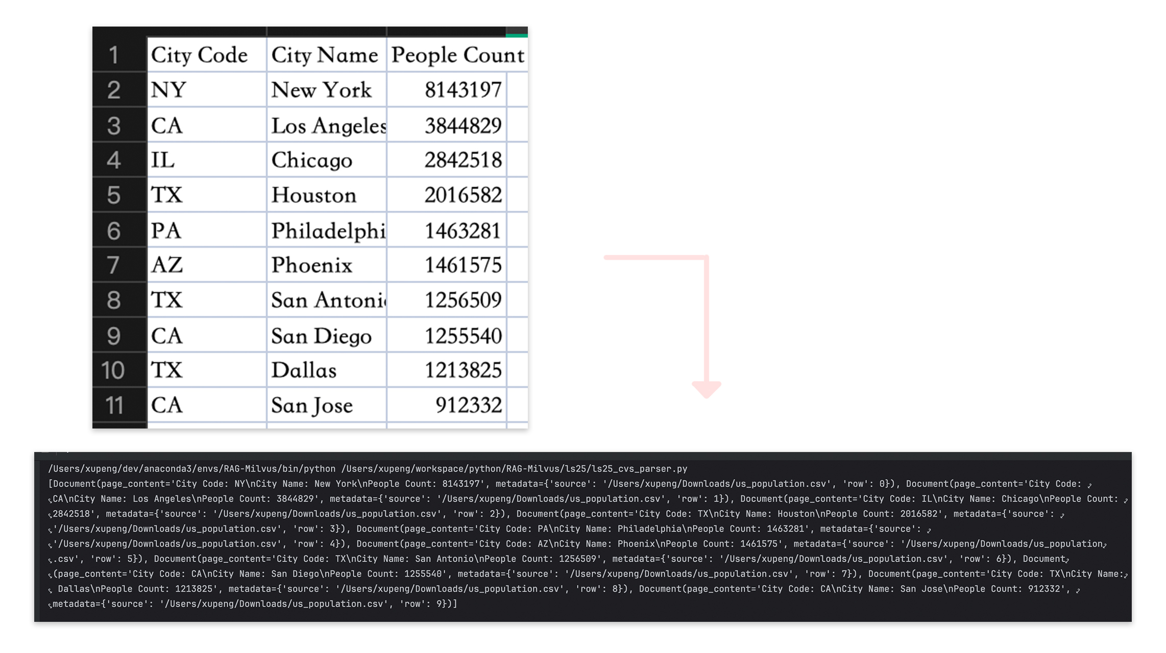 比如这个CSV有10行数据,被CSVLoader读取出来后,就生成了10个文档。