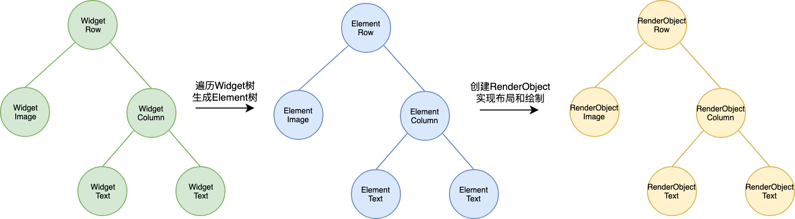 - 最后,构建成RenderObject树,以完成最终的渲染。