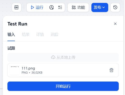 依然是点击右上角的运行,将图片上传,然后点击开始运行: