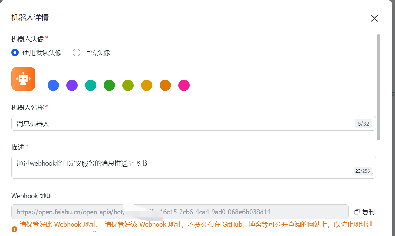 点开后,就能看到一个 WebHook 地址: