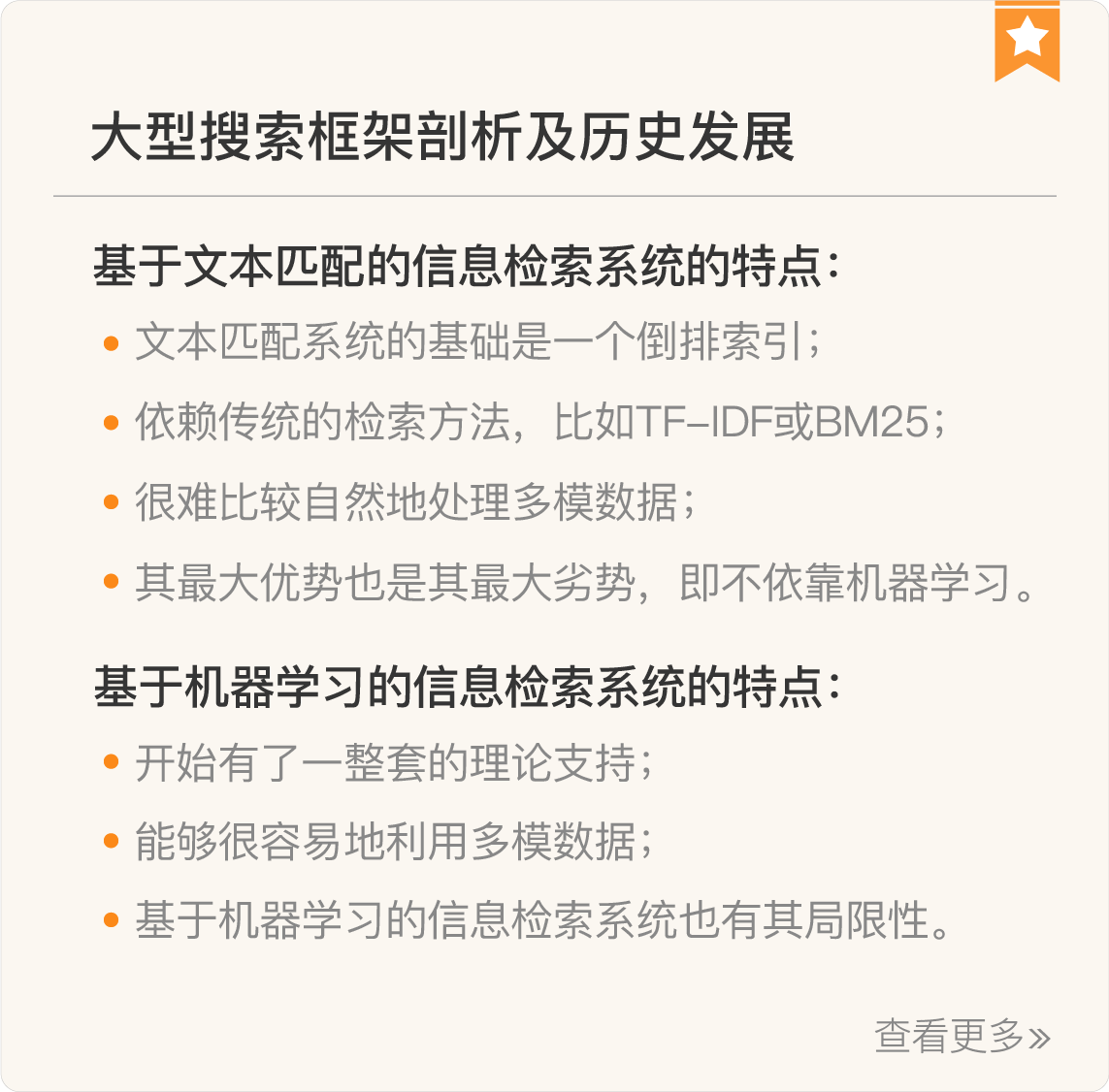 从20世纪50年代有信息检索系统开始,搜索系统大致经历了三个发展阶段。从最开始的“基于文本匹配的信息检索系统”到“基于机器学习的信息检索系统”,再到近几年受深度学习影响的“更加智能的搜索系统”。