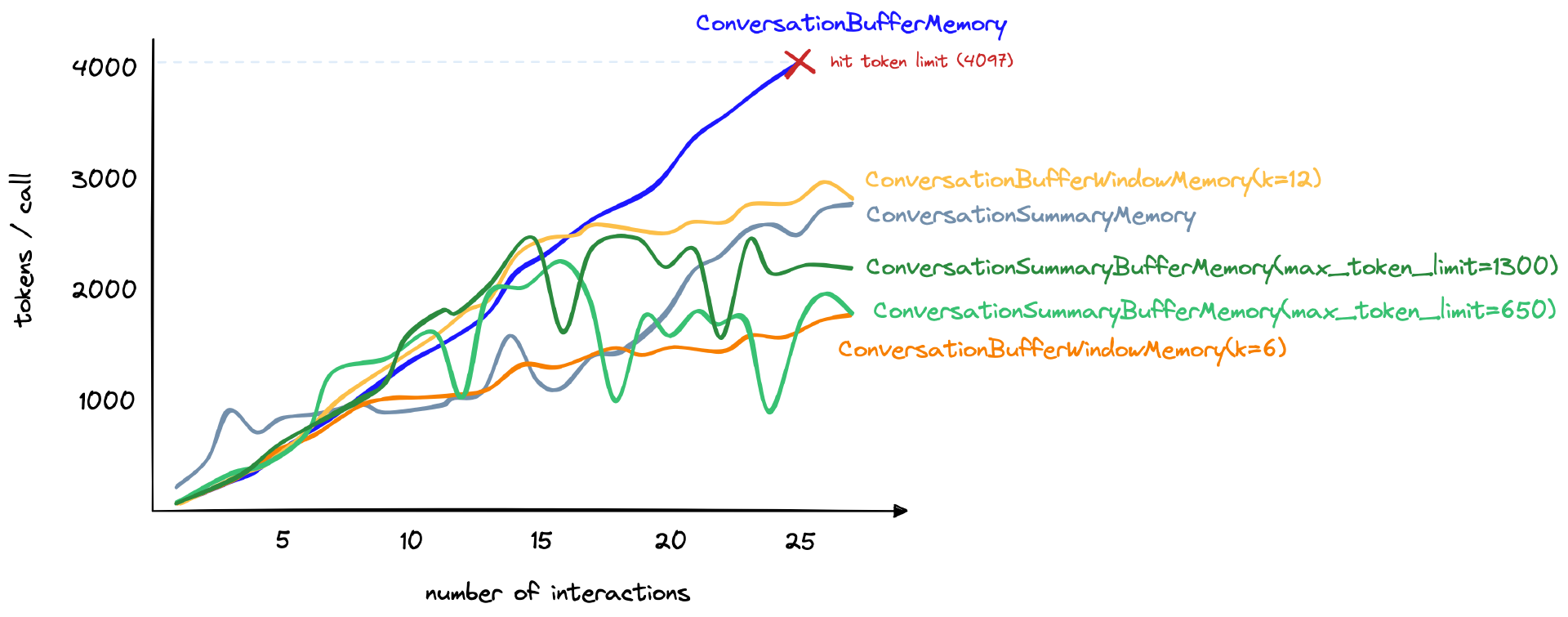 在Pinecone提供的Langchain AI Handbook里面,专门测试了一下,从BufferWindowMemory到BufferSummaryMemory,对于上下文保持的能力,以及消耗的Token数量的统计。那个教程你也可以去看一下。