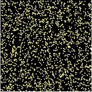 具体效果是,我们要让小三角形以不同的角度和速度,由画布中心点向四周运动,同时小三角形自身也以随机的角速度旋转。