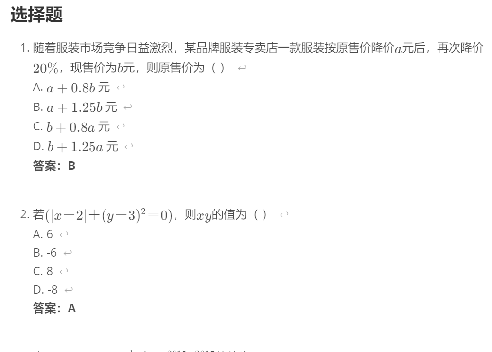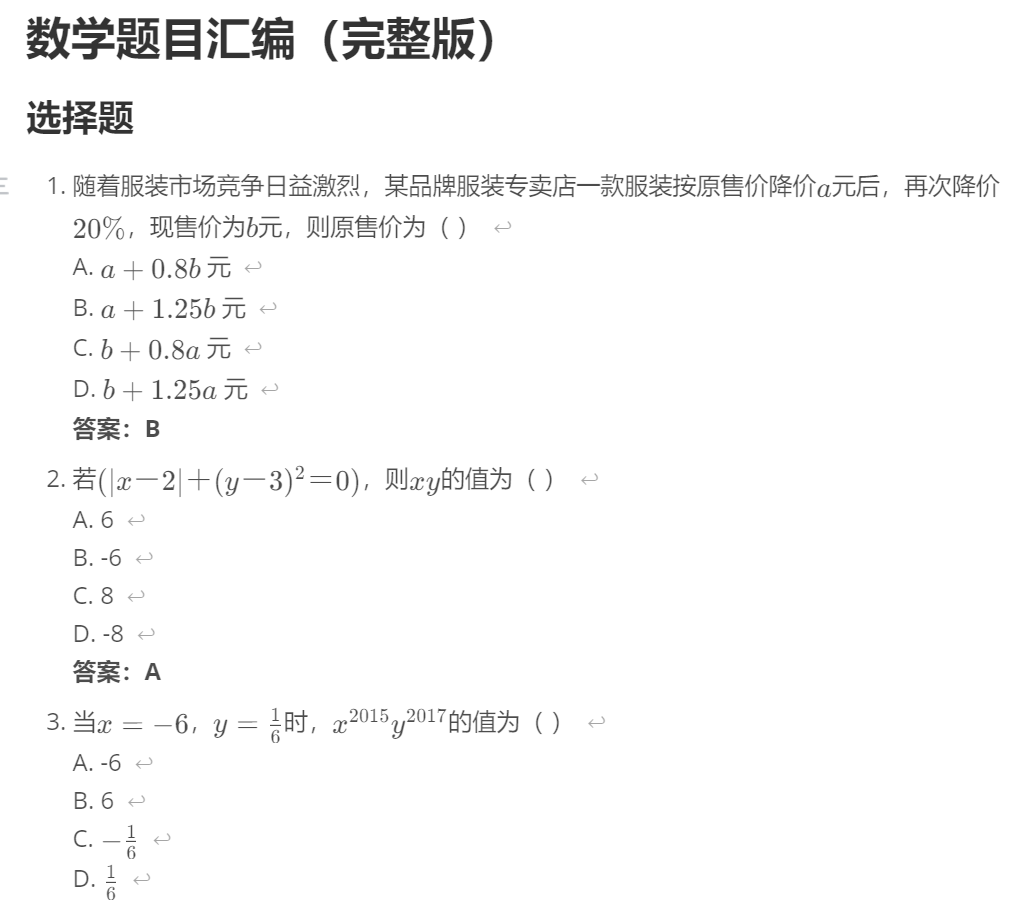 为什么要这样做呢?我们在上学时肯定买过很多课外辅导书、试卷之类的。通常试卷类的排版是先列出所有的题目,然后答案和解析是单独在附录或者另一册中的,就像这样: