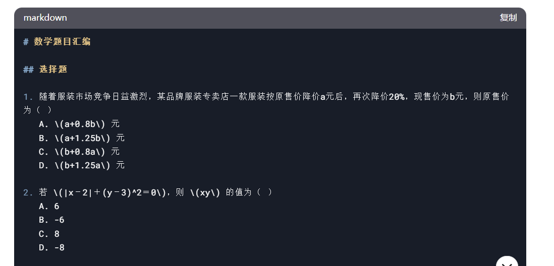 最后还需要让 DeepSeek 将字符串格式的公式转成 Inline Math 的格式: