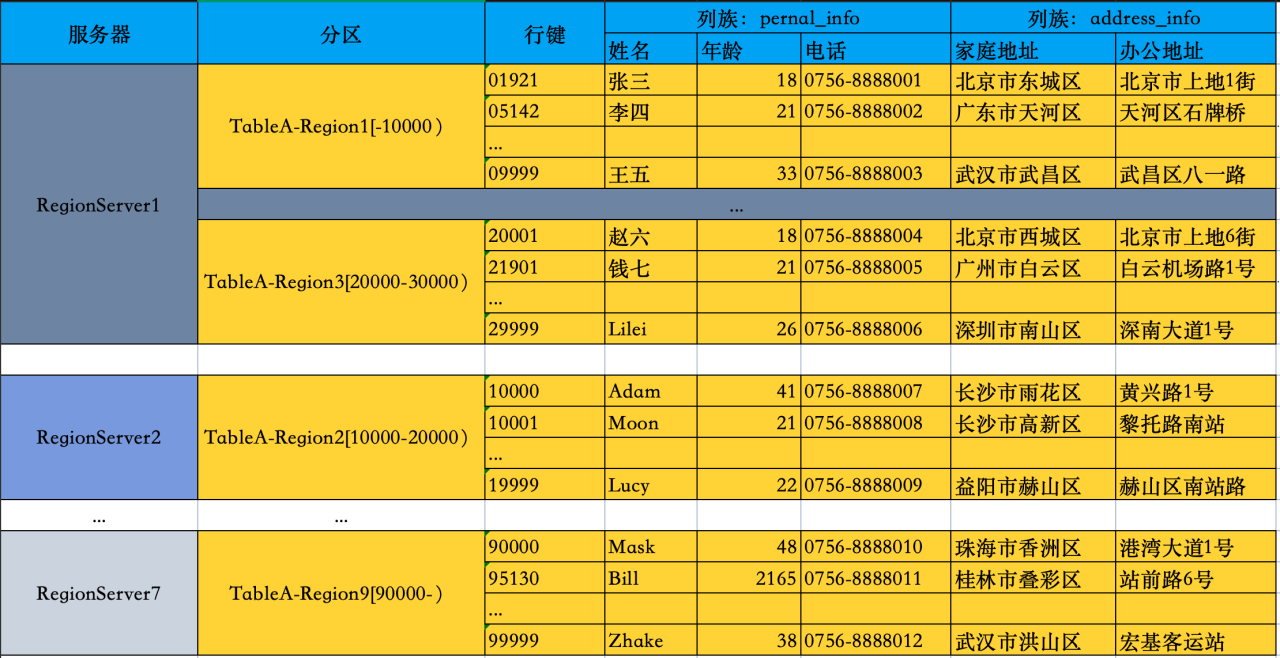 那HBase是如何存储这些分区的呢?再来看看HBase数据存储的物理模型。