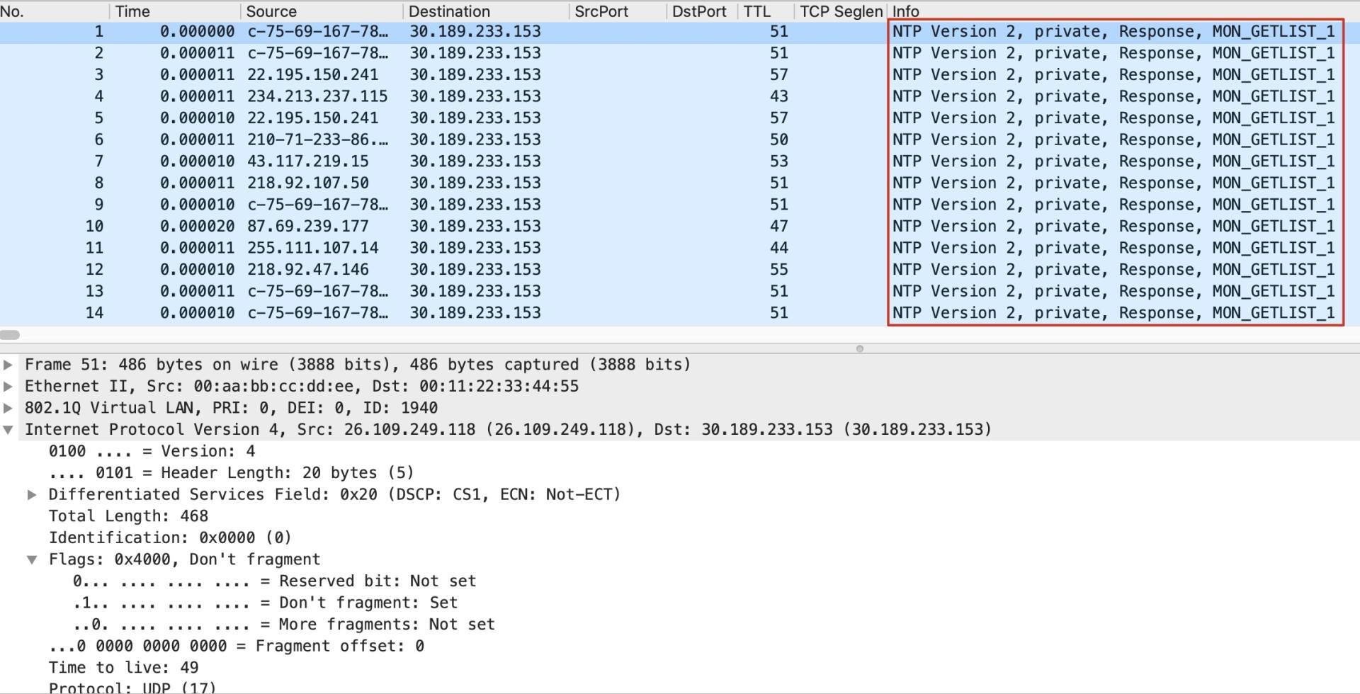 全部都是这种NTP Version 2, Private, Response, MON_GETLIST_1的报文。客户根本没有对外提供什么NTP服务,这些报文是怎么来的呢,这是攻击吗?