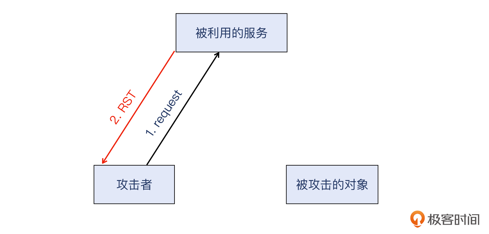 那跳过TCP握手,直接发送应用层请求(源地址还是伪造成被攻击站点的IP)给反射服务呢?当然是直接被RST,因为连握手都没做过呢。