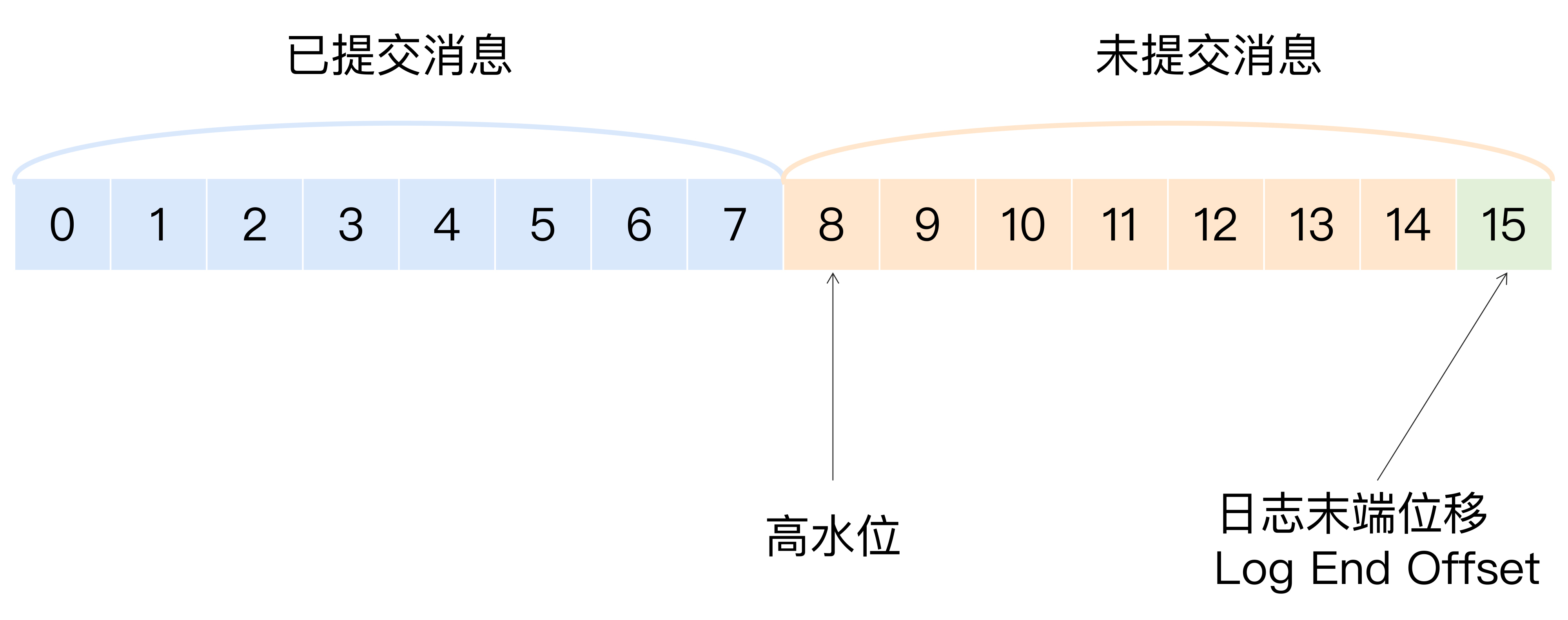 另外,需要关注的是,位移值等于高水位的消息也属于未提交消息。也就是说,高水位上的消息是不能被消费者消费的。