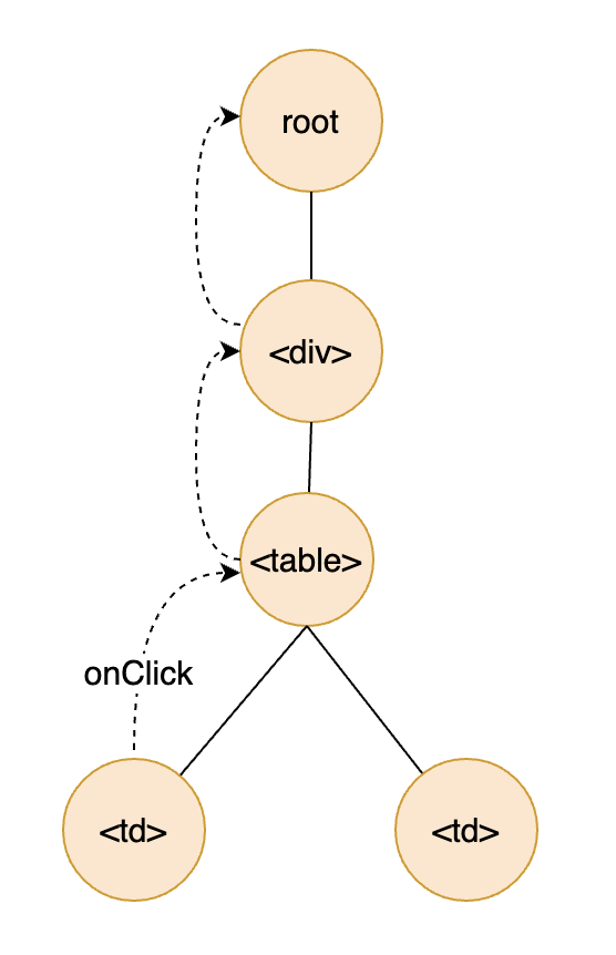 这里有一点我要多解释下。那就是为什么事件绑定在某个根节点上,也能触发实际 DOM 节点的事件。