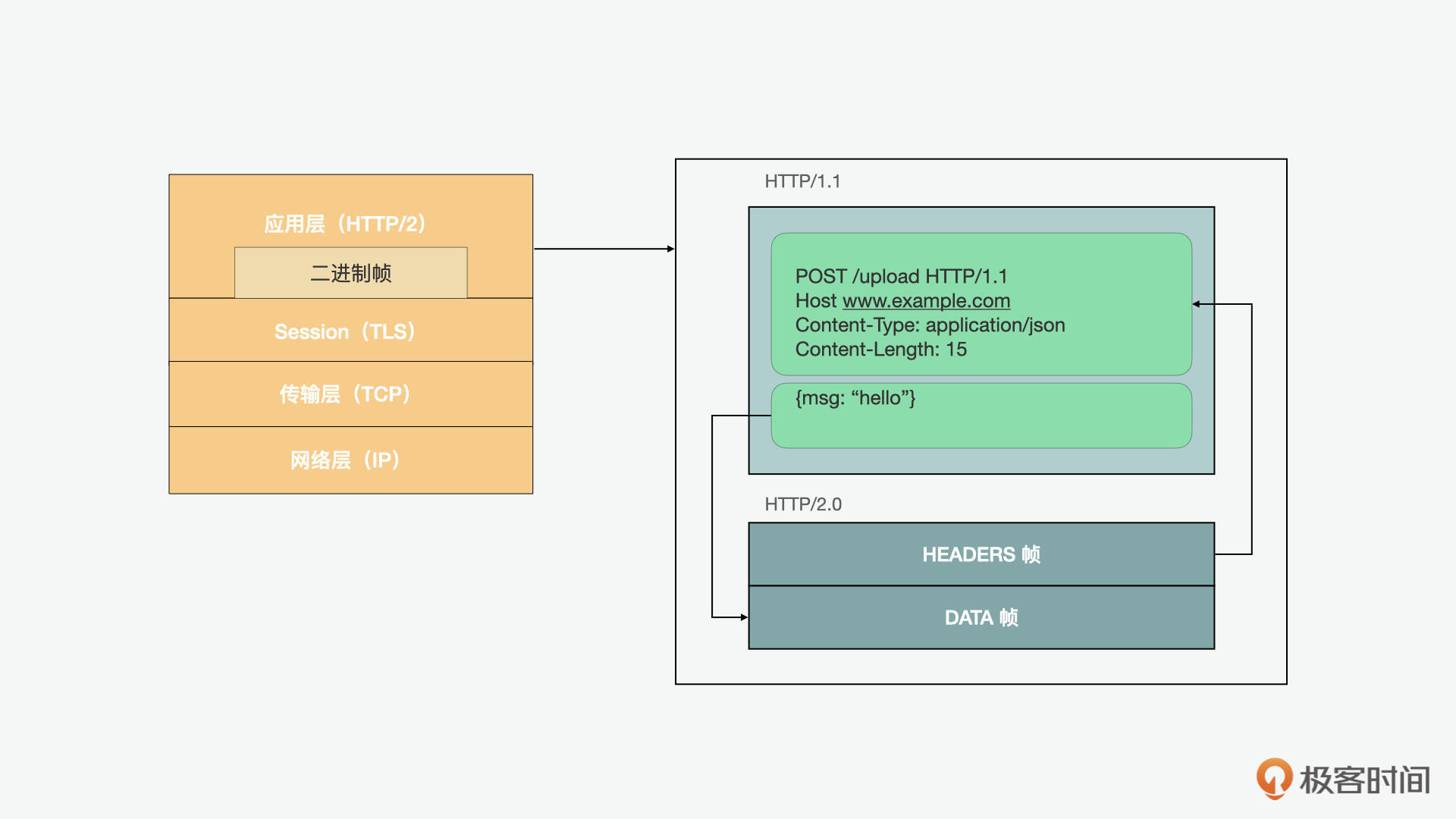 说完了HTTP/1.1时代的历史和性能优化,下面,我们再来看看HTTP/2.0时代。你可能会问,为什么HTTP在1.1版之后,这么长时间都没有什么变化呢?这是因为它的升级成本太高了,要考虑到浏览器、服务器、代理,还有其它的中间件都需要协调才能完成切换,这就代表着各种兼容性问题可能会导致应用的服务中断。所以整个行业没有什么动力去推动改革。
