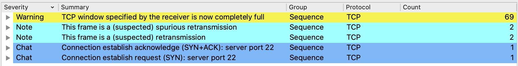 它确实提醒我们,有69个Warning级别报文,它们的问题是TCP Window specified by the receiver is now completely Full。在展开进一步排查之前,我们先对这个信息做一下解读。