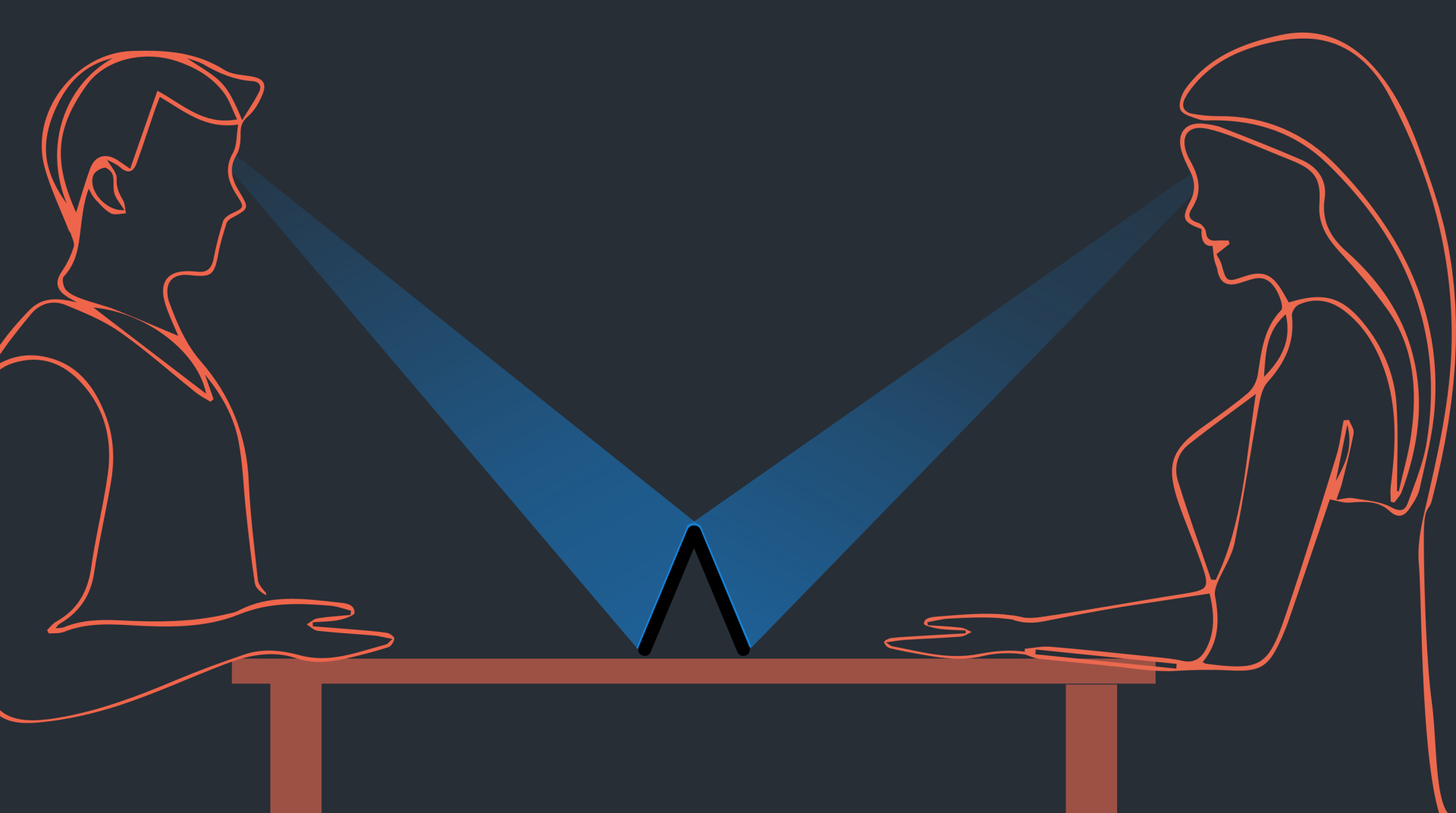 这种中间态也为人们不同的互动提供了新的交互可能(比如翻译、游戏互动)。两个对坐的人都可以看到折叠屏中间的那一条区域,这个区域也可以作为视觉共享空间来显示信息,你可以针对不同场景来做出相应的业务设计。