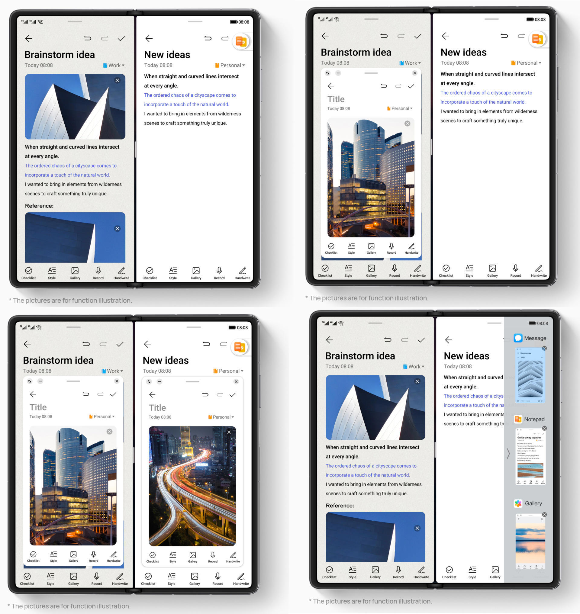 - 方型屏的多屏操作和分屏隐喻。不必简单追求方型屏的沉浸式体验,这种屏幕更适合多屏、多窗口的互动和分屏体验。