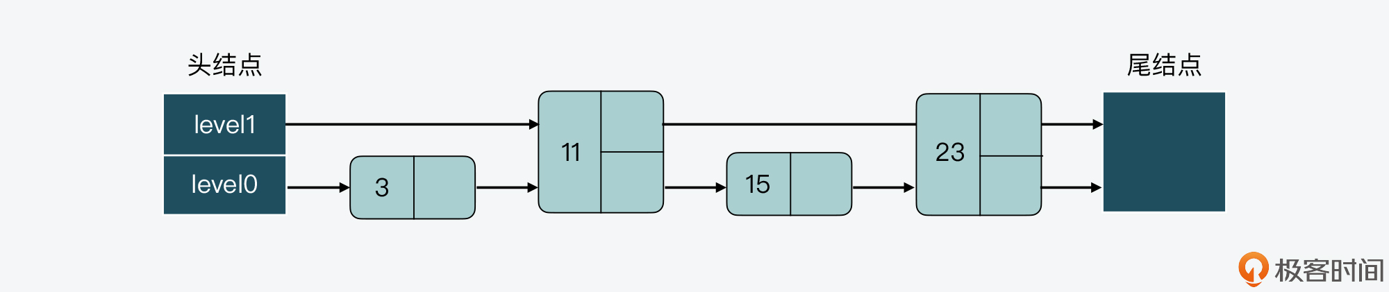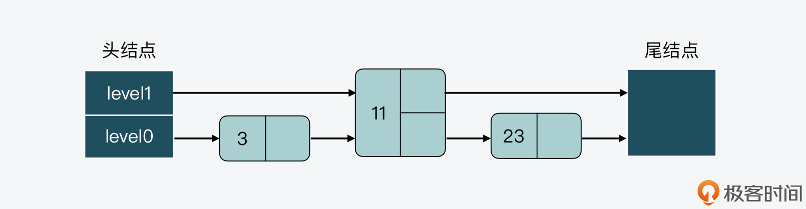 好,在对跳表有了直观印象后,我们再来看看跳表实现的具体数据结构。