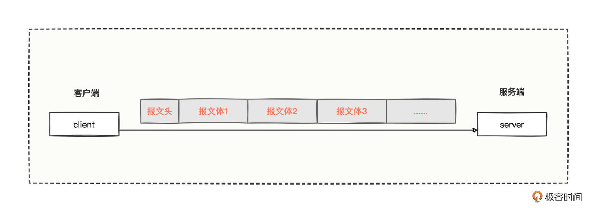 针对这个问题,我们梳理了帧格式的概念,借助 client 向 server 发送数据的简单模型案例,引出了 client 与 server 约定了三种类型的协议格式,分别是固定长度、分隔符、定长+变长。