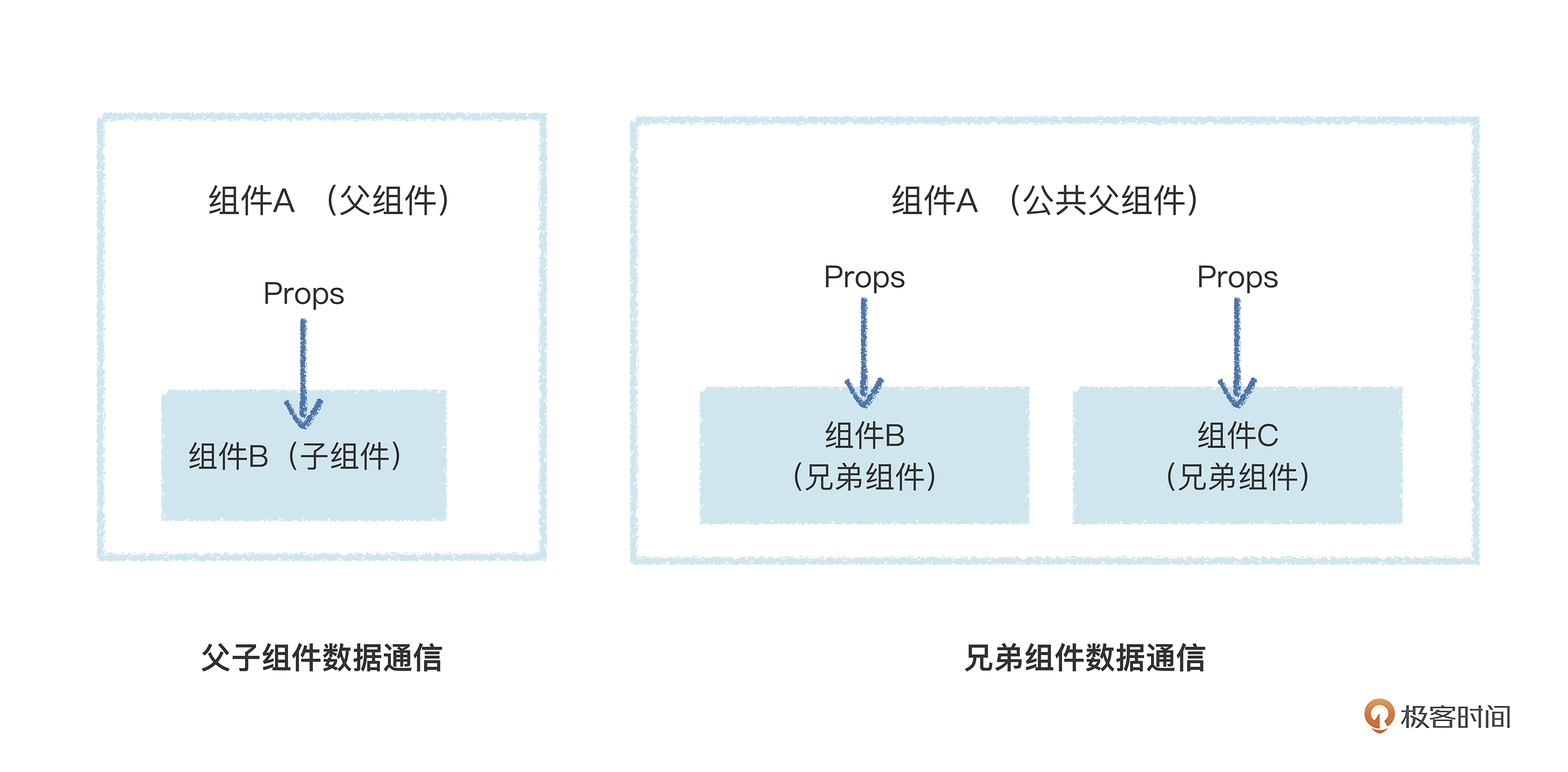 如果你能提到这个问题,说明你上节课掌握得很不错,但是注意了,我们这节课讲的是数据跨组件通信,跟响应式不是一个维度上的技术点。