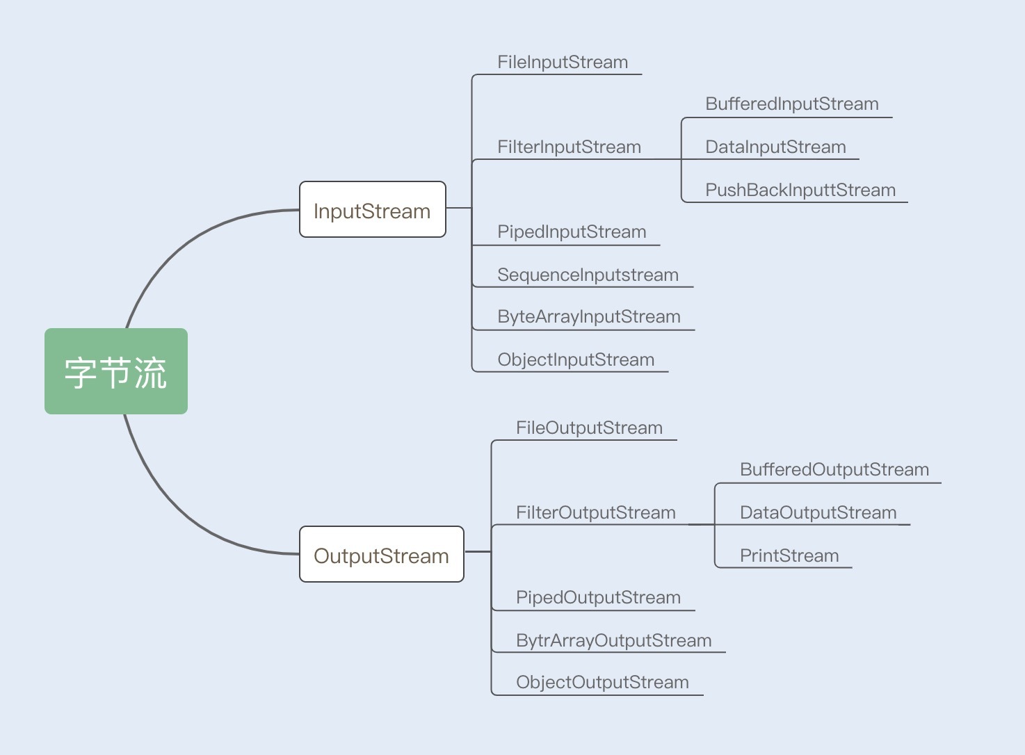 InputStream/OutputStream是字节流的抽象类,这两个抽象类又派生出了若干子类,不同的子类分别处理不同的操作类型。如果是文件的读写操作,就使用FileInputStream/FileOutputStream;如果是数组的读写操作,就使用ByteArrayInputStream/ByteArrayOutputStream;如果是普通字符串的读写操作,就使用BufferedInputStream/BufferedOutputStream。具体内容如下图所示: