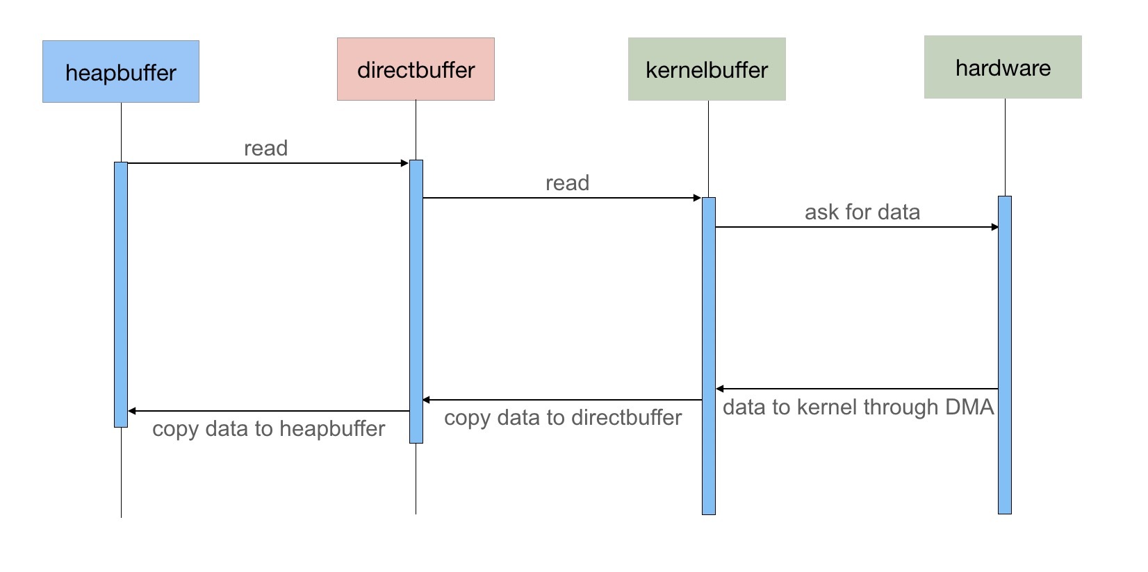 你肯定会在想,为什么Java需要通过一个临时的非堆内存来复制数据呢?如果单纯使用Java堆内存进行数据拷贝,当拷贝的数据量比较大的情况下,Java堆的GC压力会比较大,而使用非堆内存可以减低GC的压力。