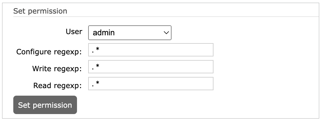- EXTERNAL 是指插件化支持多种认证形式,比如LADP、X.509、IP范围认证就是以这种方式实现的。如果你想了解这些认证方式的使用方式,可以参考官方文档 RabbitMQ 权限控制。