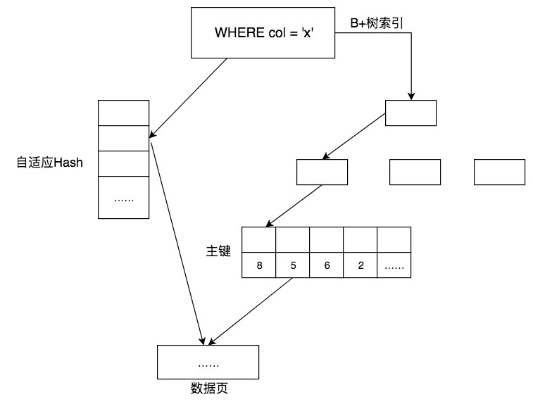 InnoDB中的自适应Hash相当于“索引的索引”,采用Hash索引存储的是B+树索引中的页面的地址。如下图所示:
